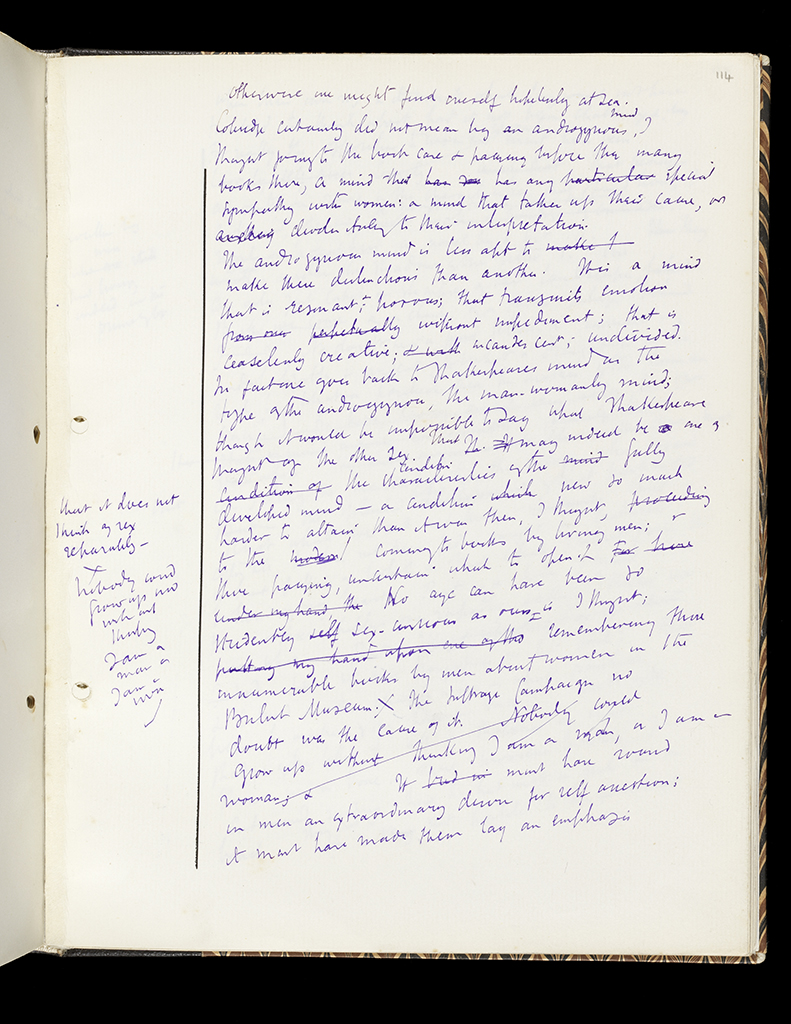 Previous Image Next Image A Room of One’s Own, by Virginia Woolf Manuscript/Novel. Women and Fiction – A Room of One’s Own. Woolf, Virginia (British, 1882-1941). Height 27 cm, width 21 cm, 1928-1929.
