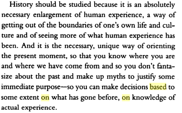On page 12, there is an interesting discussion on why one should study history, both at the level of an individual and the collective. Below, I reproduce a paragraph related to this.