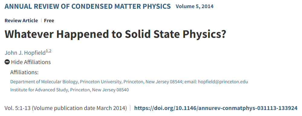 This situation leads us back to the question: What is physics? John Hopfield himself offers an interesting definition related to this question, emphasizing that viewpoint is a crucial element. This perspective allows for greater freedom in using physics beyond conventional definitions. Among scientific disciplines, physics is always associated with its depth of understanding. This is a good opportunity to emphasize the breadth of physics, which is equally noteworthy.