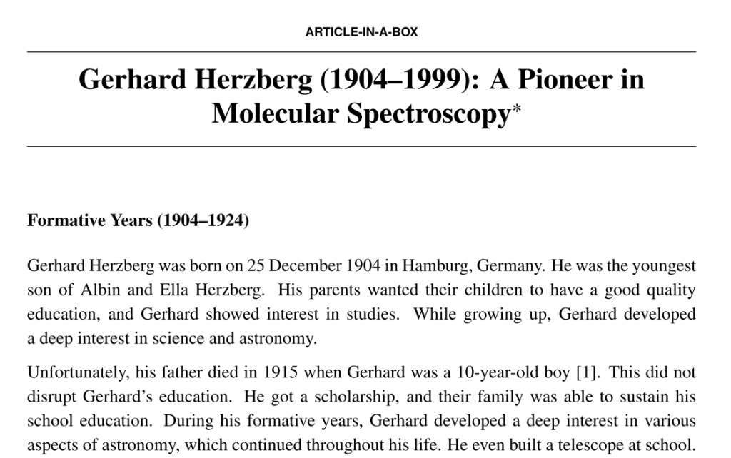 He lived an extraordinary life, first in Europe learning quantum mechanics and then escaping 1930s Germany as his wife was of Jewish origin. Then, he settled in Canada to build and lead his lab, which was considered the ‘mecca of spectroscopy’ at NRC, Ottowa.